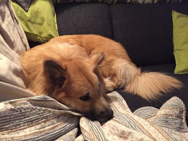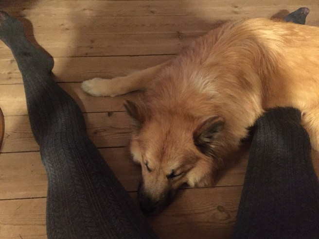 Dagen har været dejlig med pc og hund på fødderne. Her til aften skulle pigerne være alene med Balder mens jeg var til svøm og Mark til møde. Det havde været svært fordi han peb og virkede rastløs. Ærgerligt at det var lidt anstrengende for Liva ikke at kunne hjælpe ham til ro.