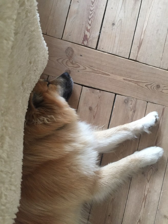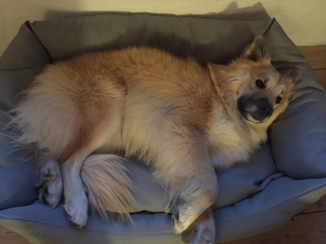 Han gør lidt mere nu, synes jeg, end da vi fik ham, særligt af frisbeen i leg og helt vildt af mågerne i parken og ved havet/ i haven. Og han skal blive bedre til at gå i snor, lytte når han er løs og ikke springe op – springe op delen er han faktisk allerede blevet bedre til..