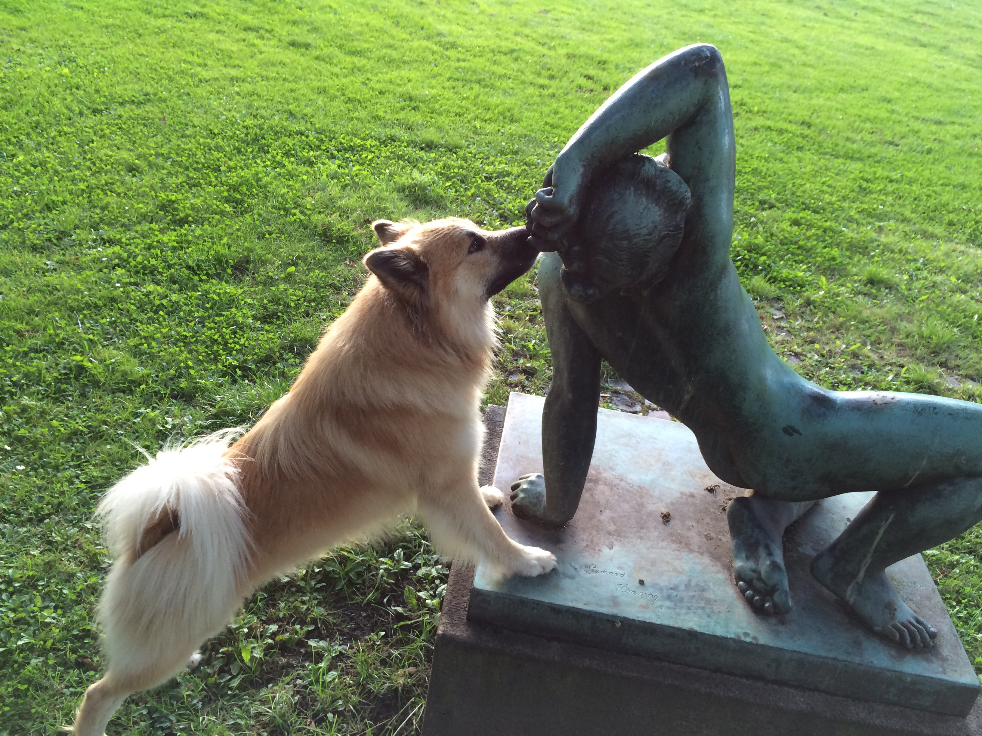 Det hjalp, da vi fik hilst på de første hunde mens han var stadig i snor.