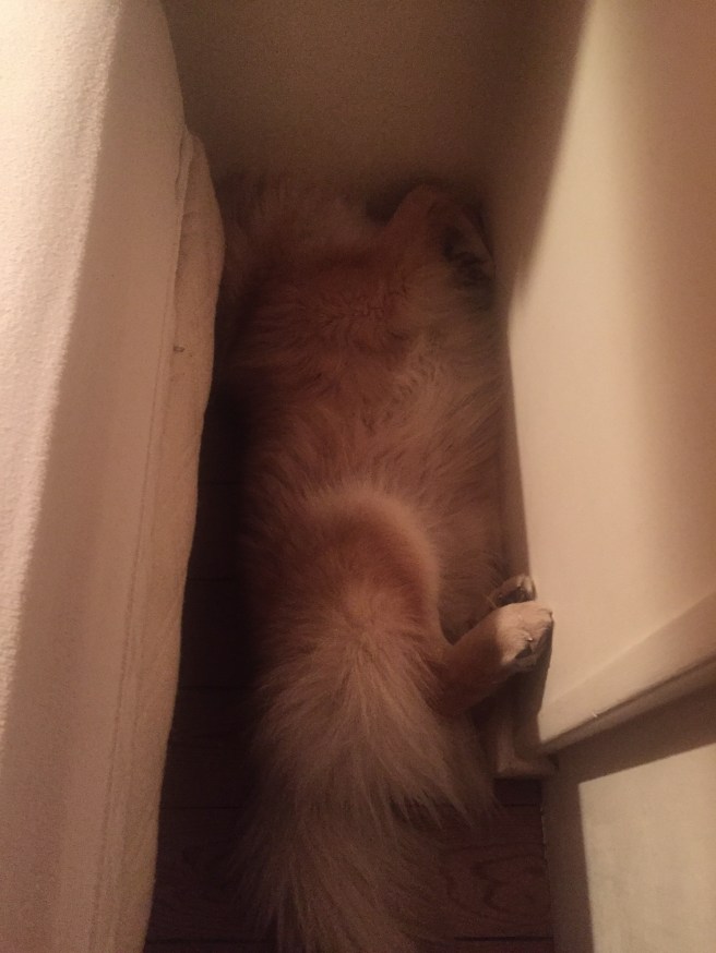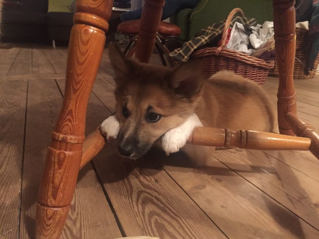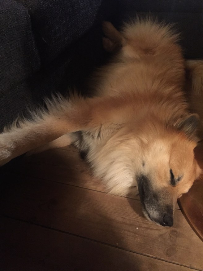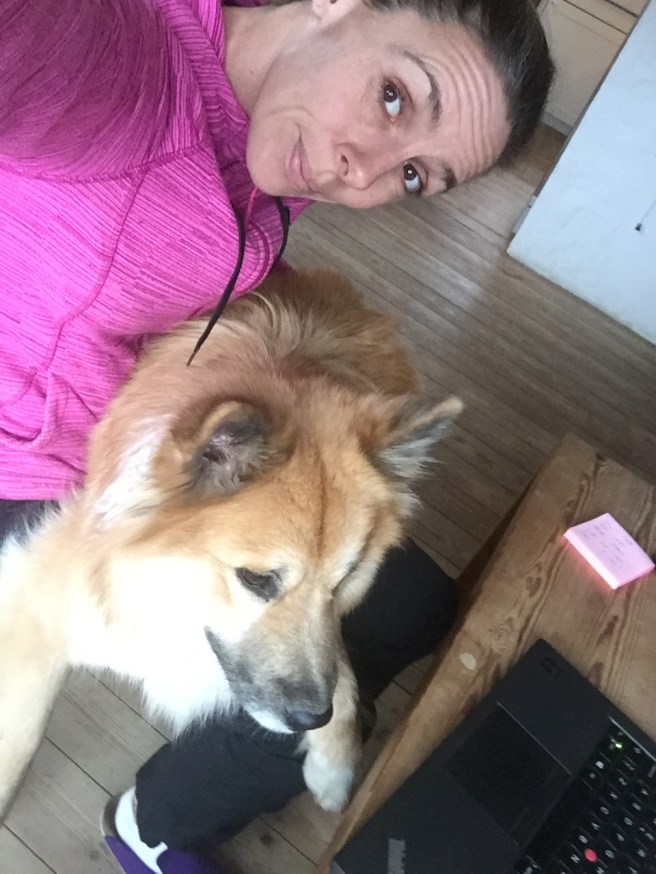 Men han vil op når det sker, som en anden baby. Så hjemmearbejdsdagen i dag har været interessant…