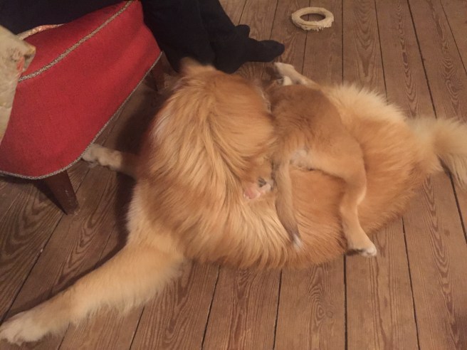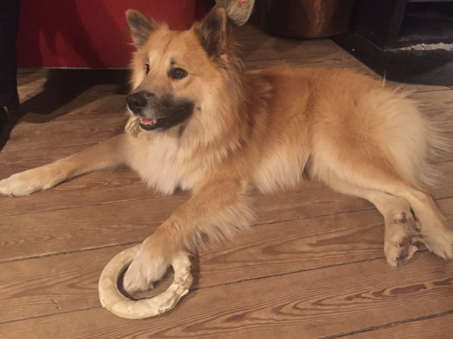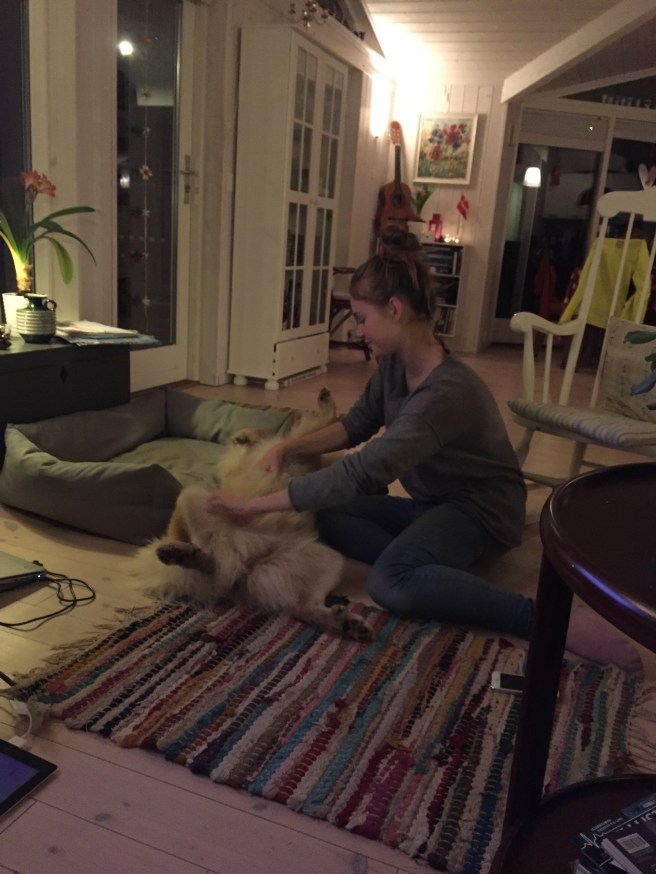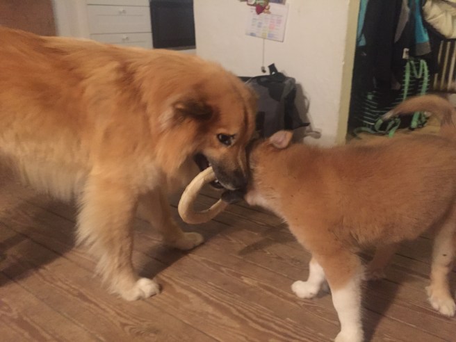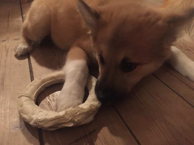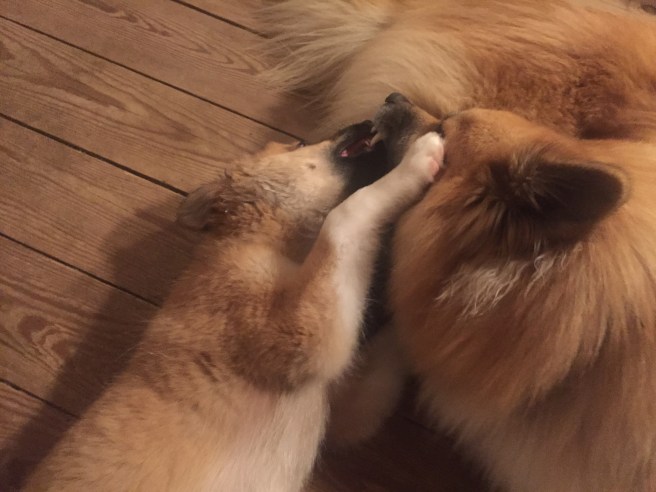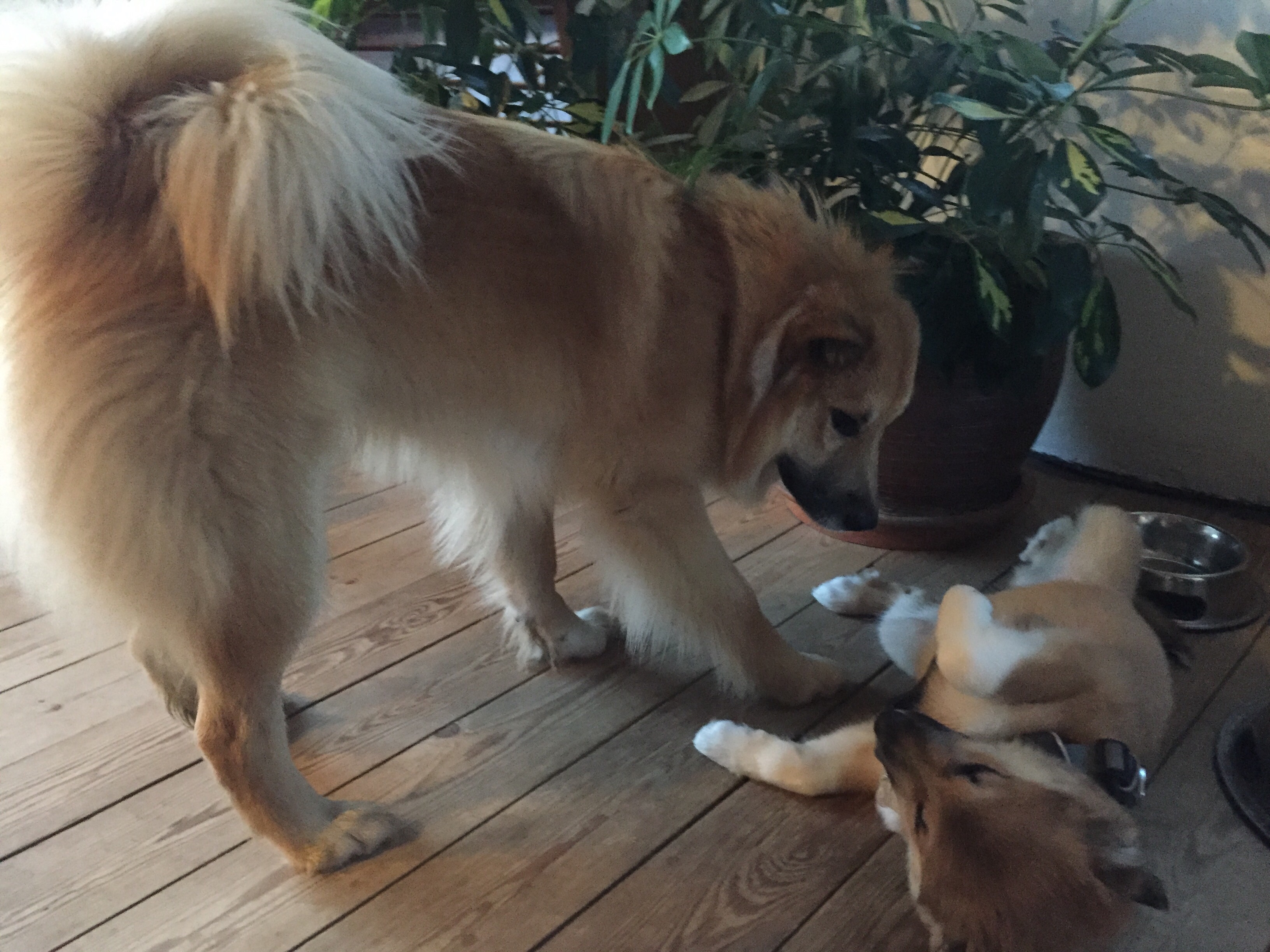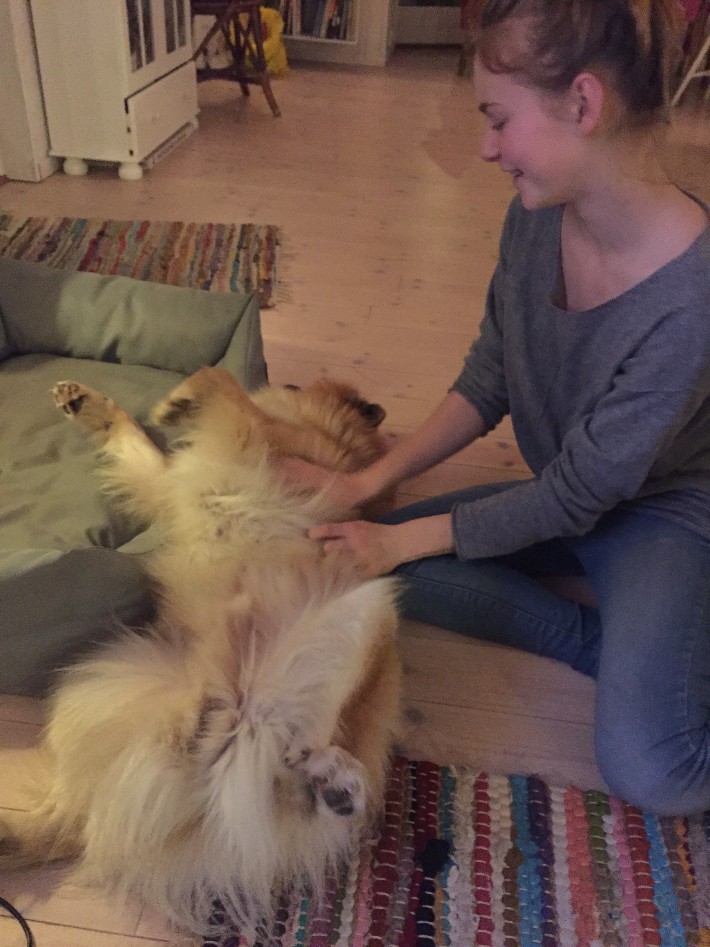 Først brummede han da Smilla ville snuppe hans ben men lynhurtigt fandt de en facon der virkede for den begge. Smilla udfordrede og afprøvede og blev ved og han fandt sig i det!