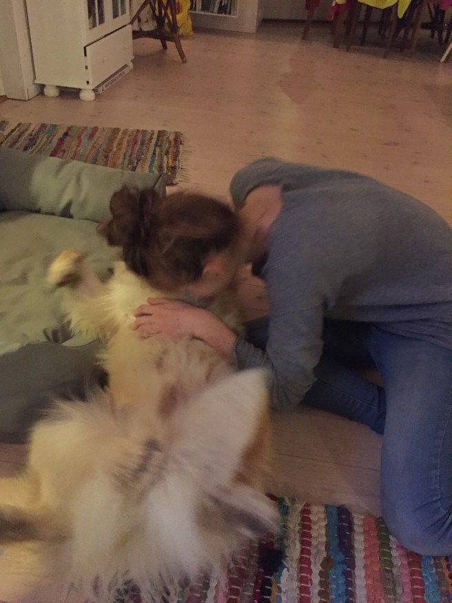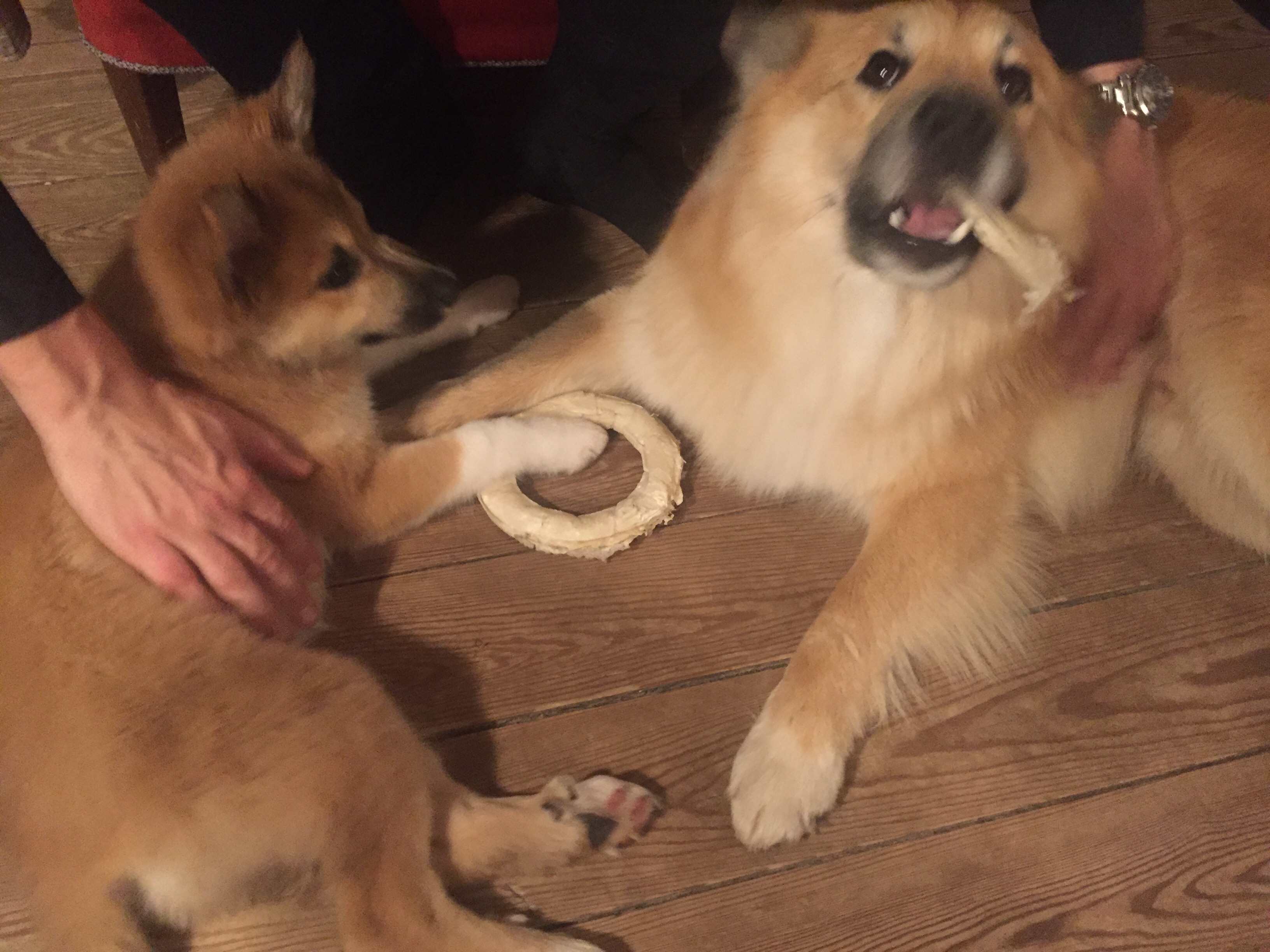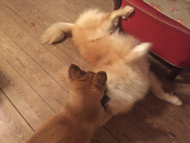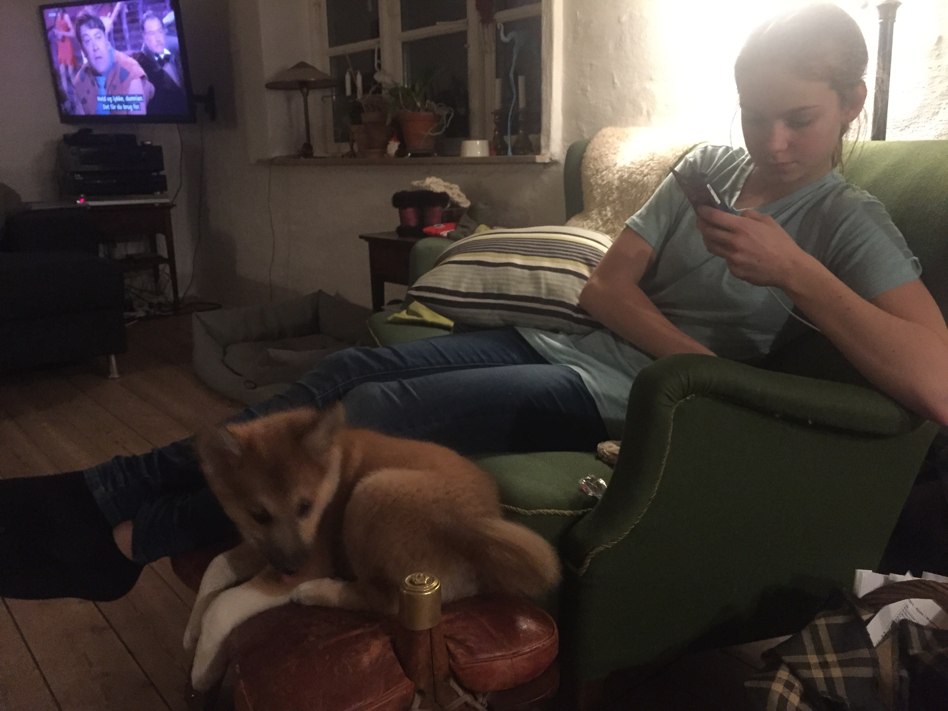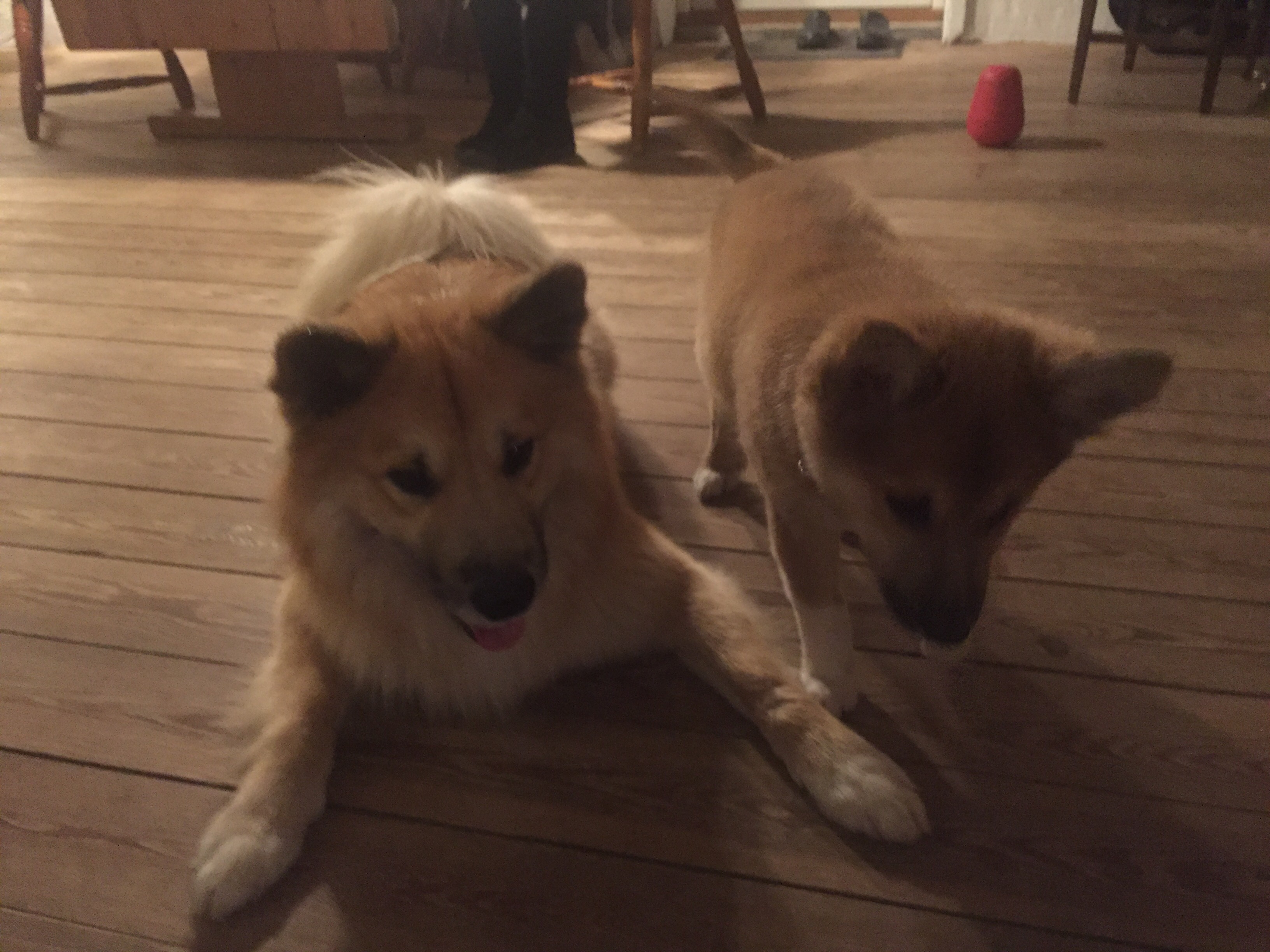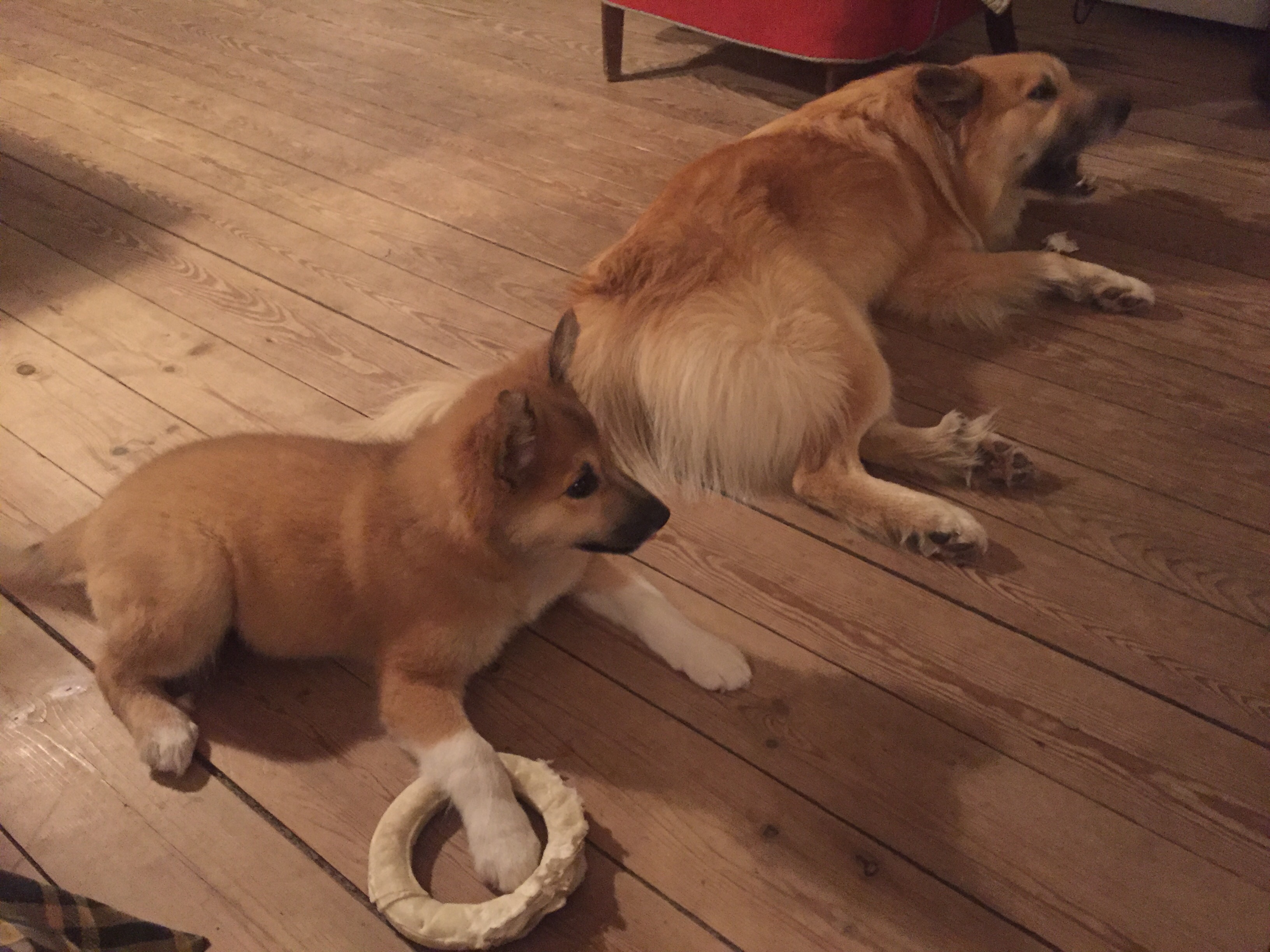 Min kusine har fået søde søde Smilla for snart 4 uger siden. Islandsk fårehund:-) og da vi skal holde julefrokost sammen holdt vi i dag spontan generalprøve, så de lige havde mødtes inden vi er sammen mange mennesker om er par uger.