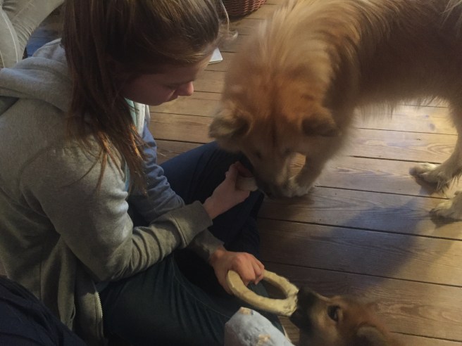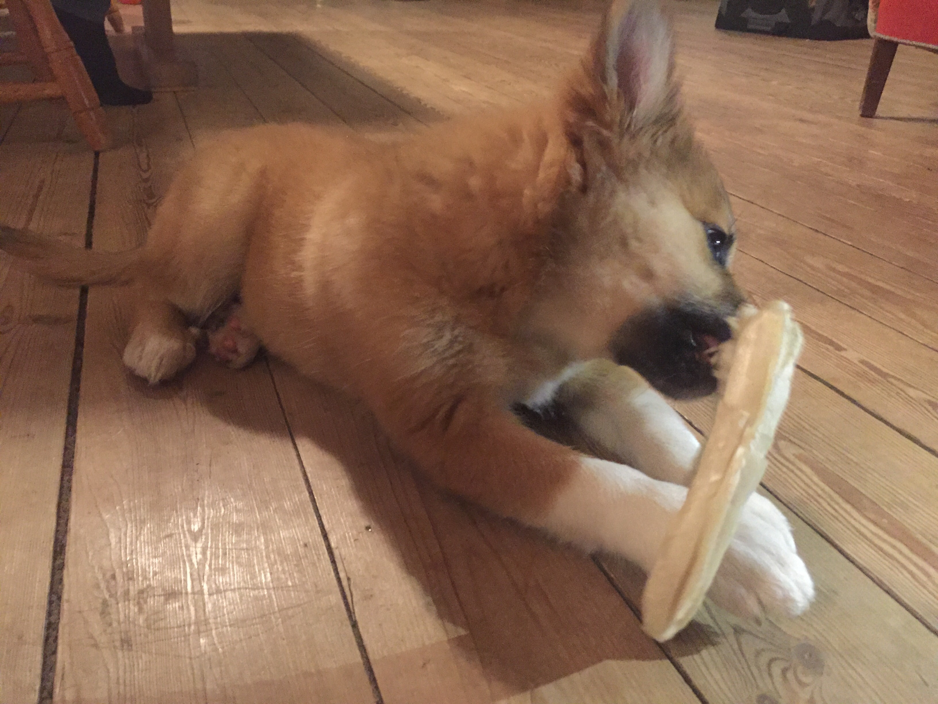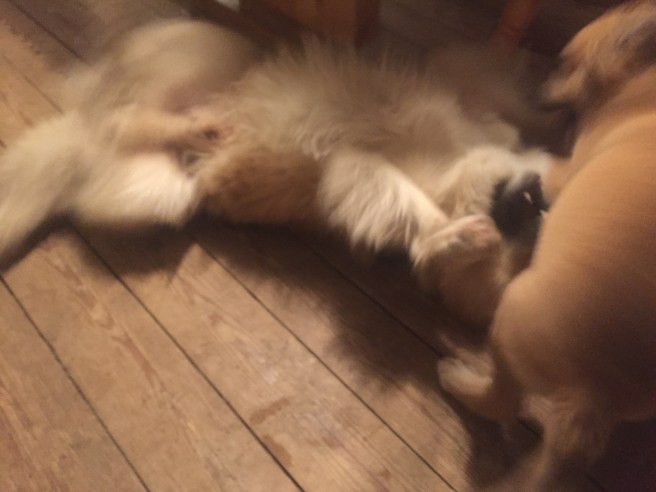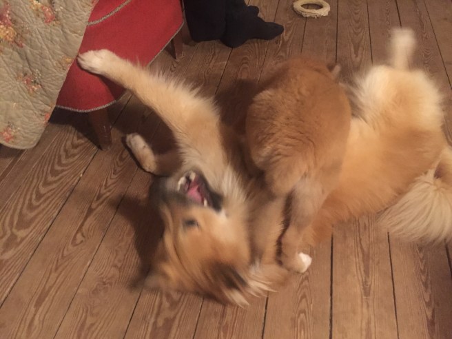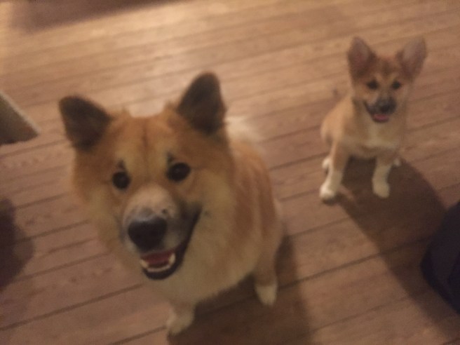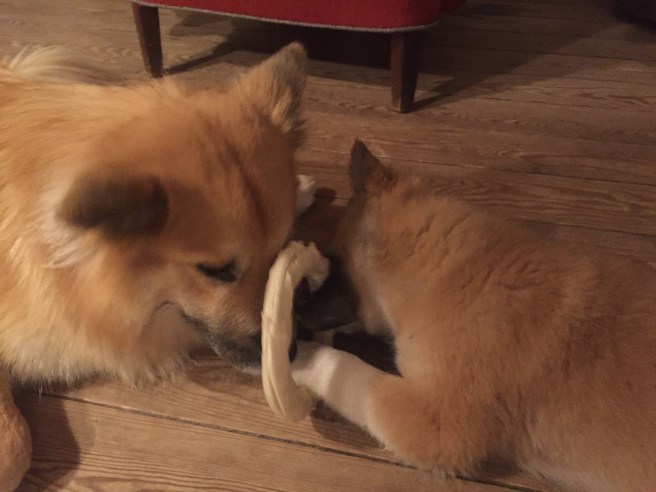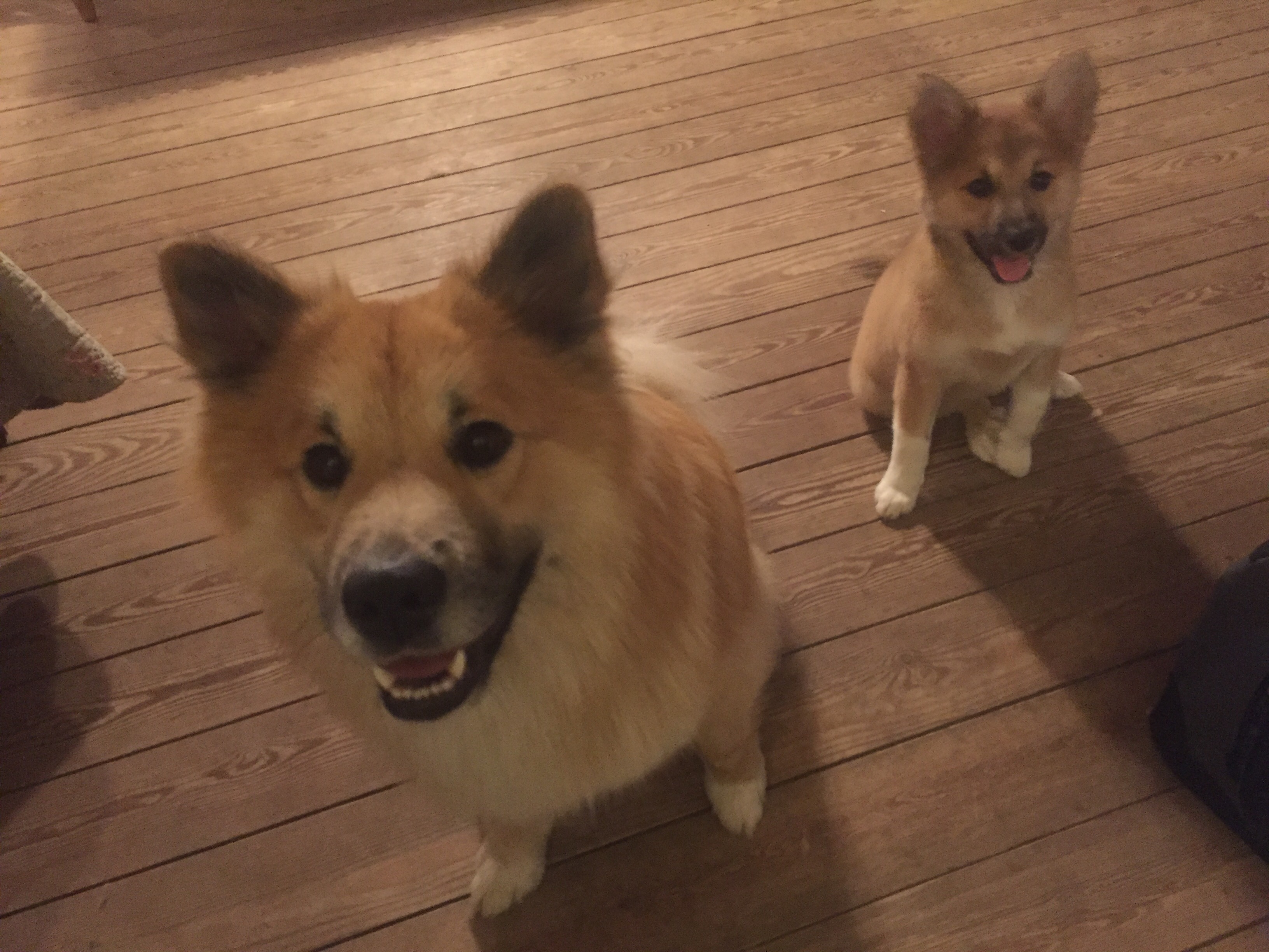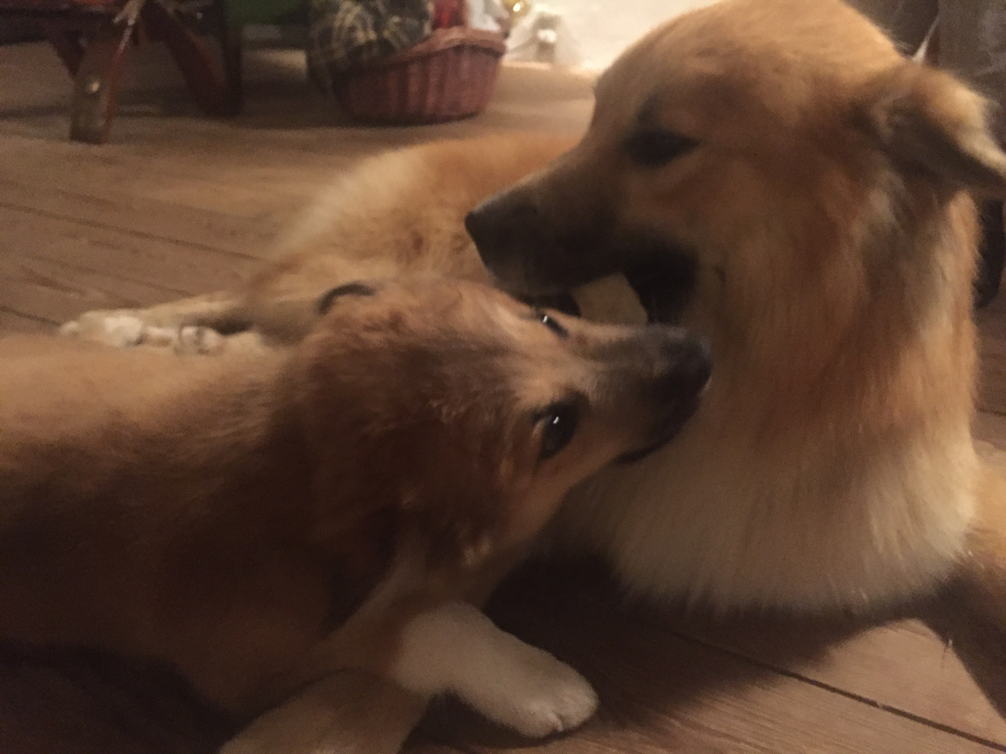 Min kusine har fået søde søde Smilla for snart 4 uger siden. Islandsk fårehund:-) og da vi skal holde julefrokost sammen holdt vi i dag spontan generalprøve, så de lige havde mødtes inden vi er sammen mange mennesker om er par uger.
