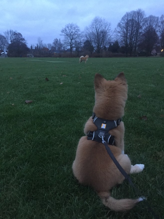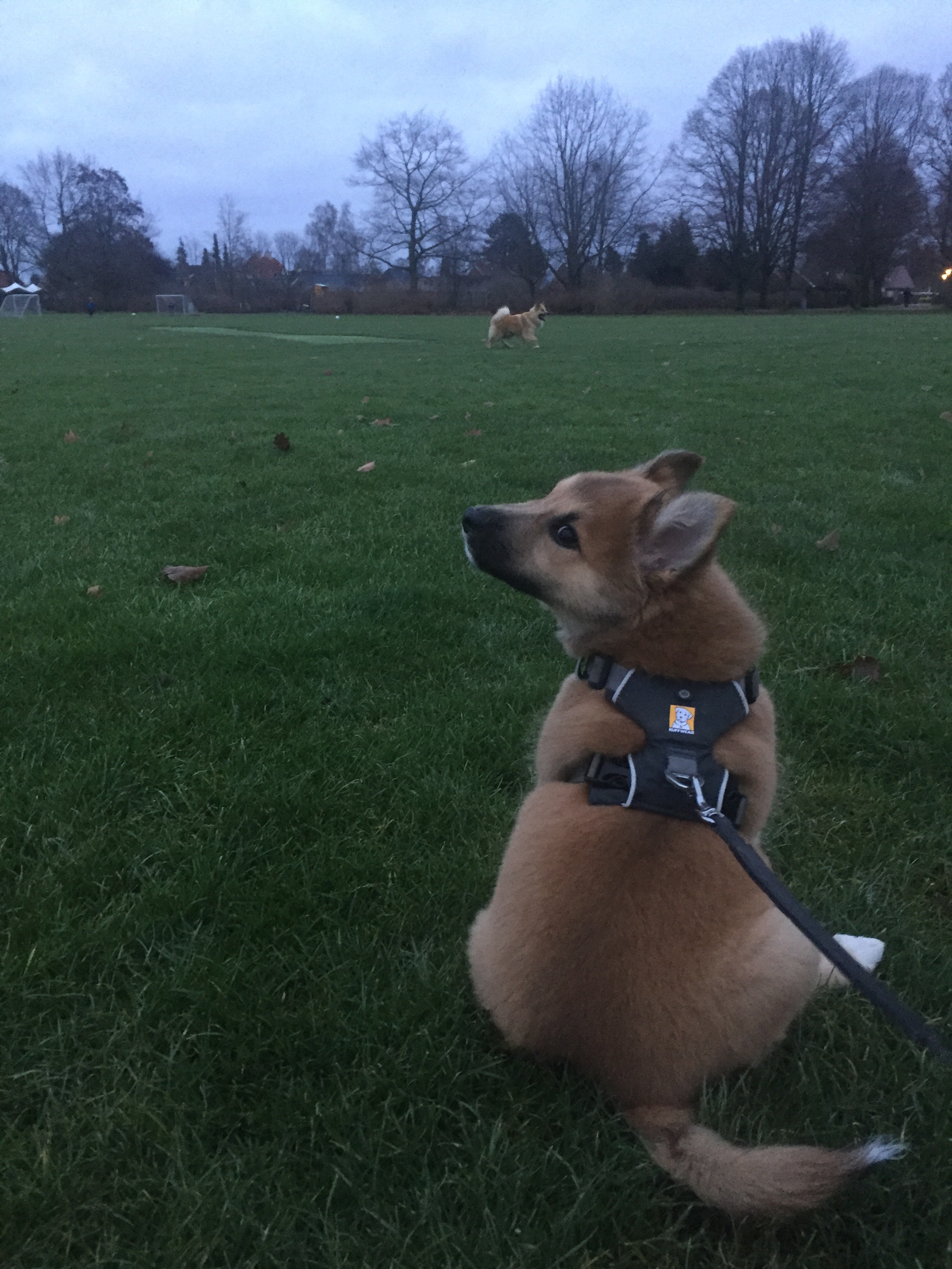 Flere gange på vej i parken (Balder har lært at gå løs) stoppede Balder op og kiggede tilbage efter Mark – som for at tjekke om han kom med.