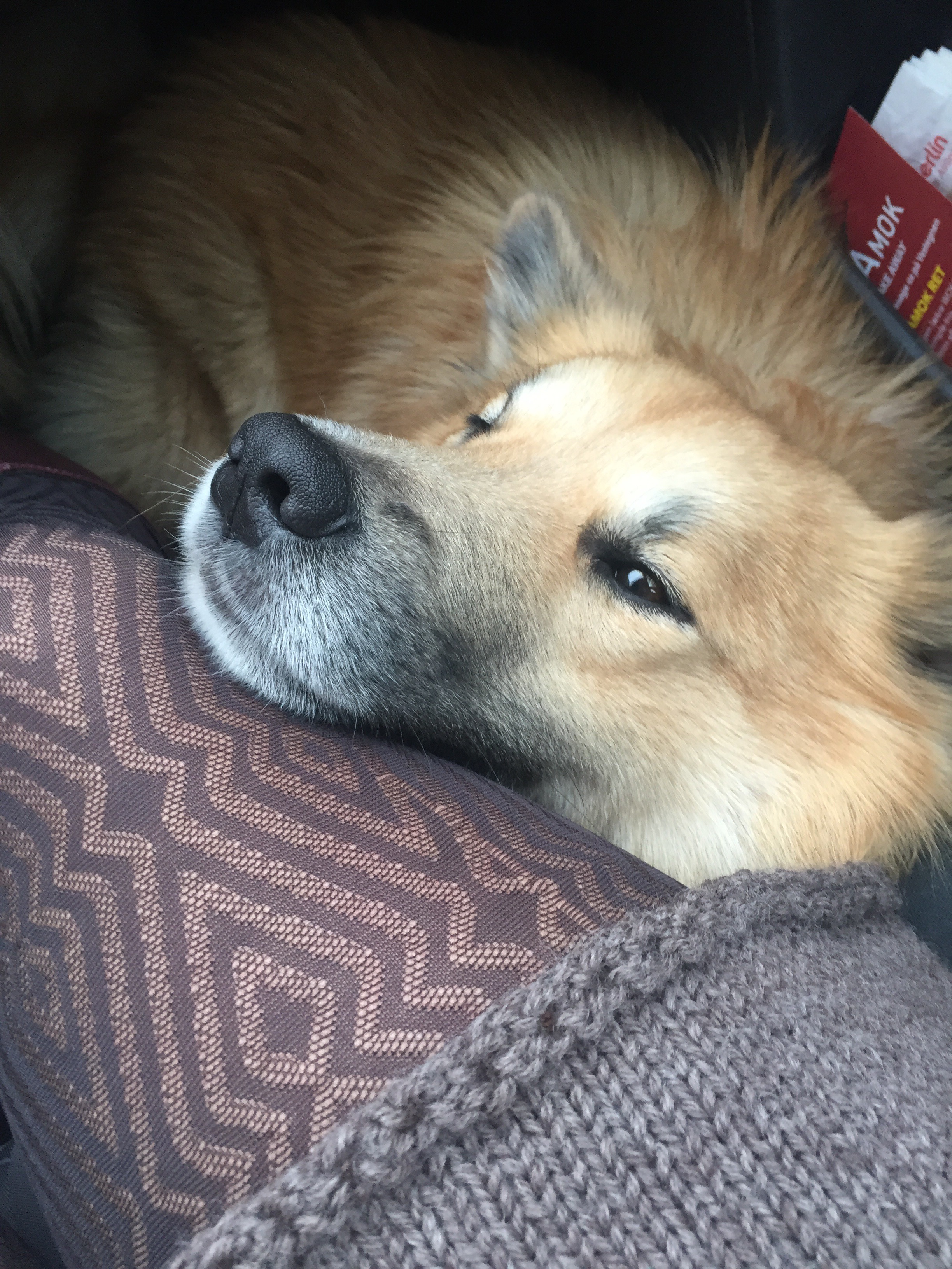 Jeg gik tur med Balder samtidig med at Mark kom hjem i bil på vejen. Balder hilste på ham gennem det nedrullede vindue.