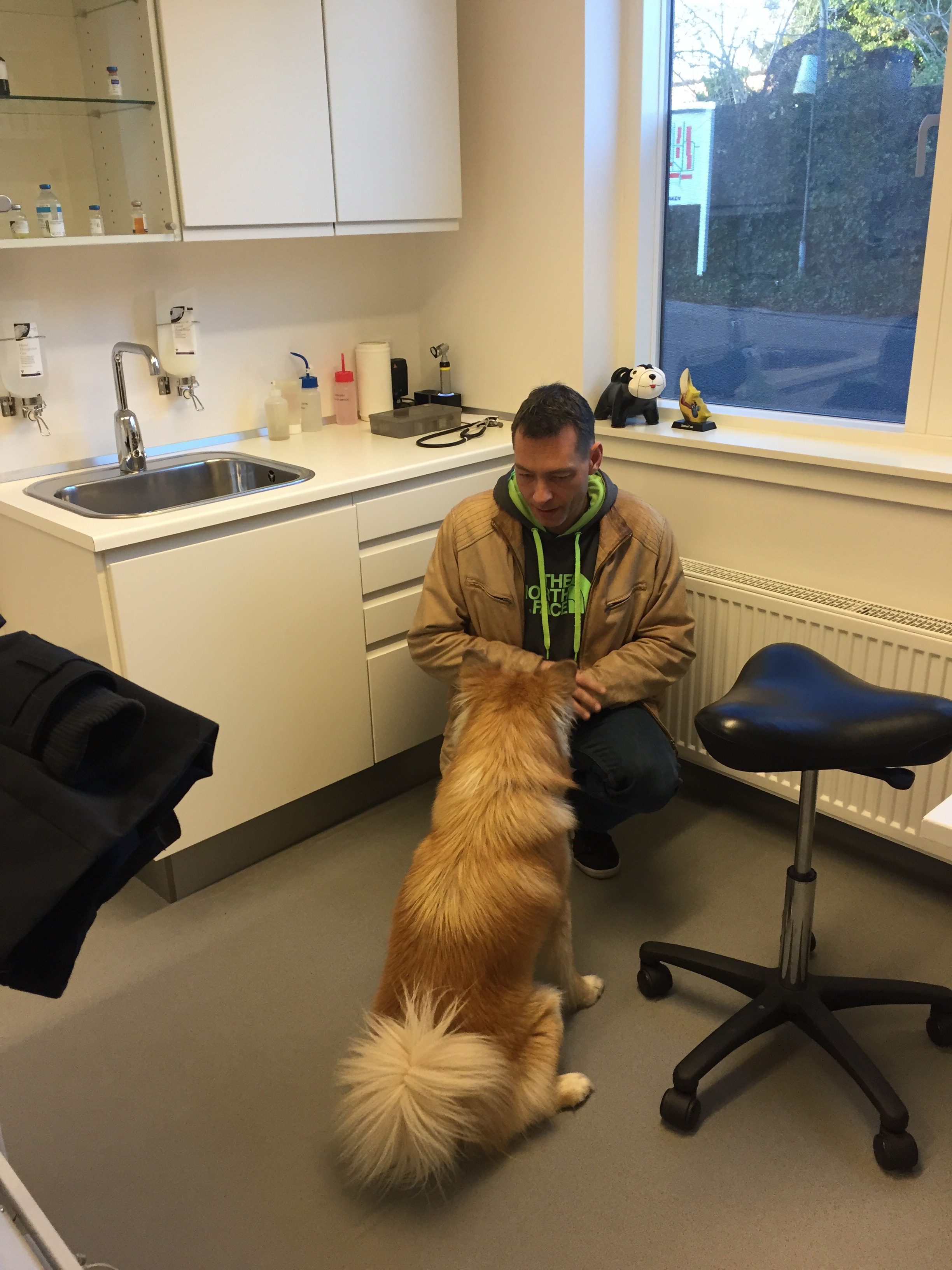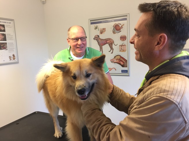 Nåååårh min lille vuffi! Men han var så dygtig hos dyrlægen – gøede kun en lille smule af en rød kat🐱
