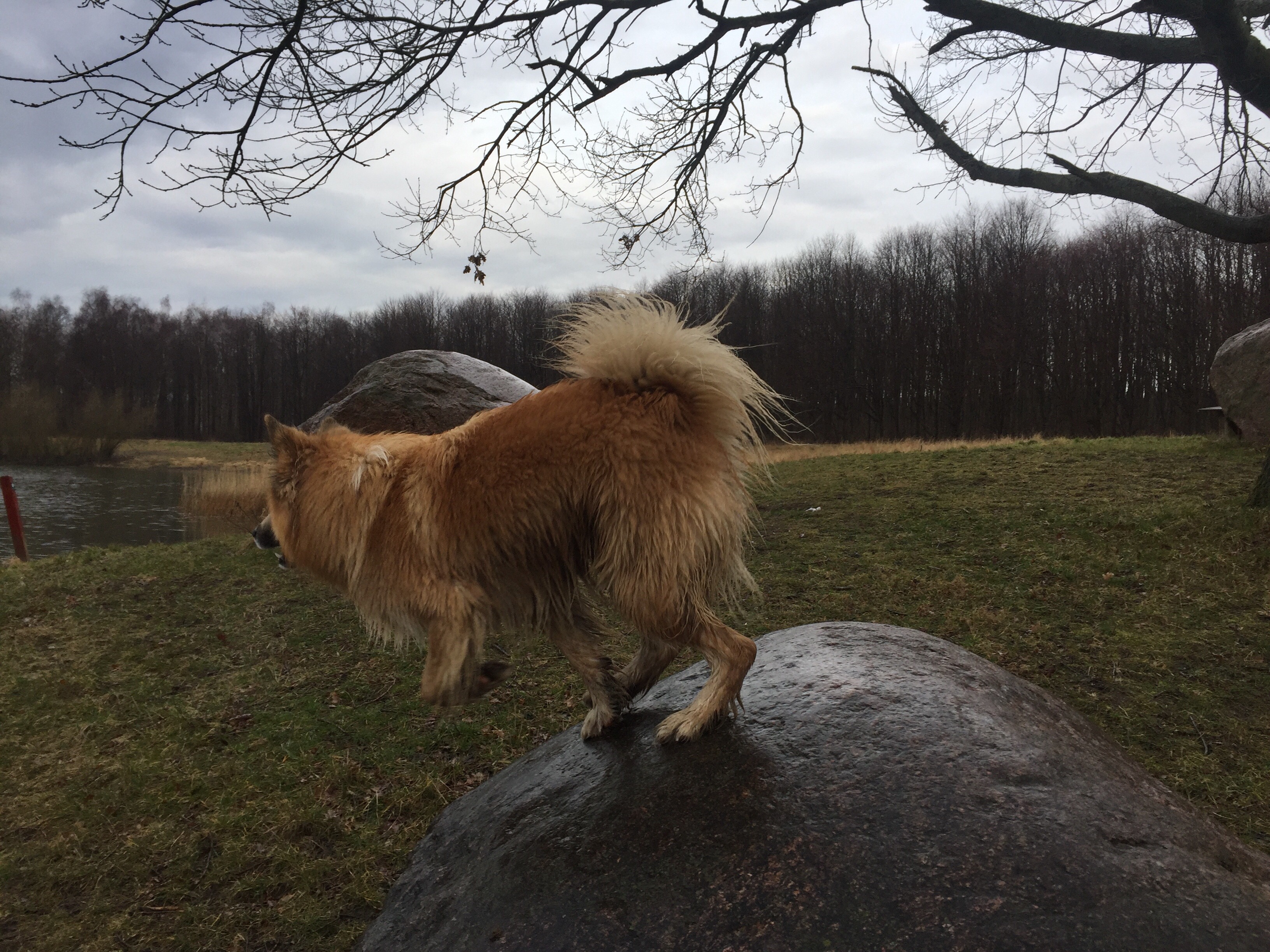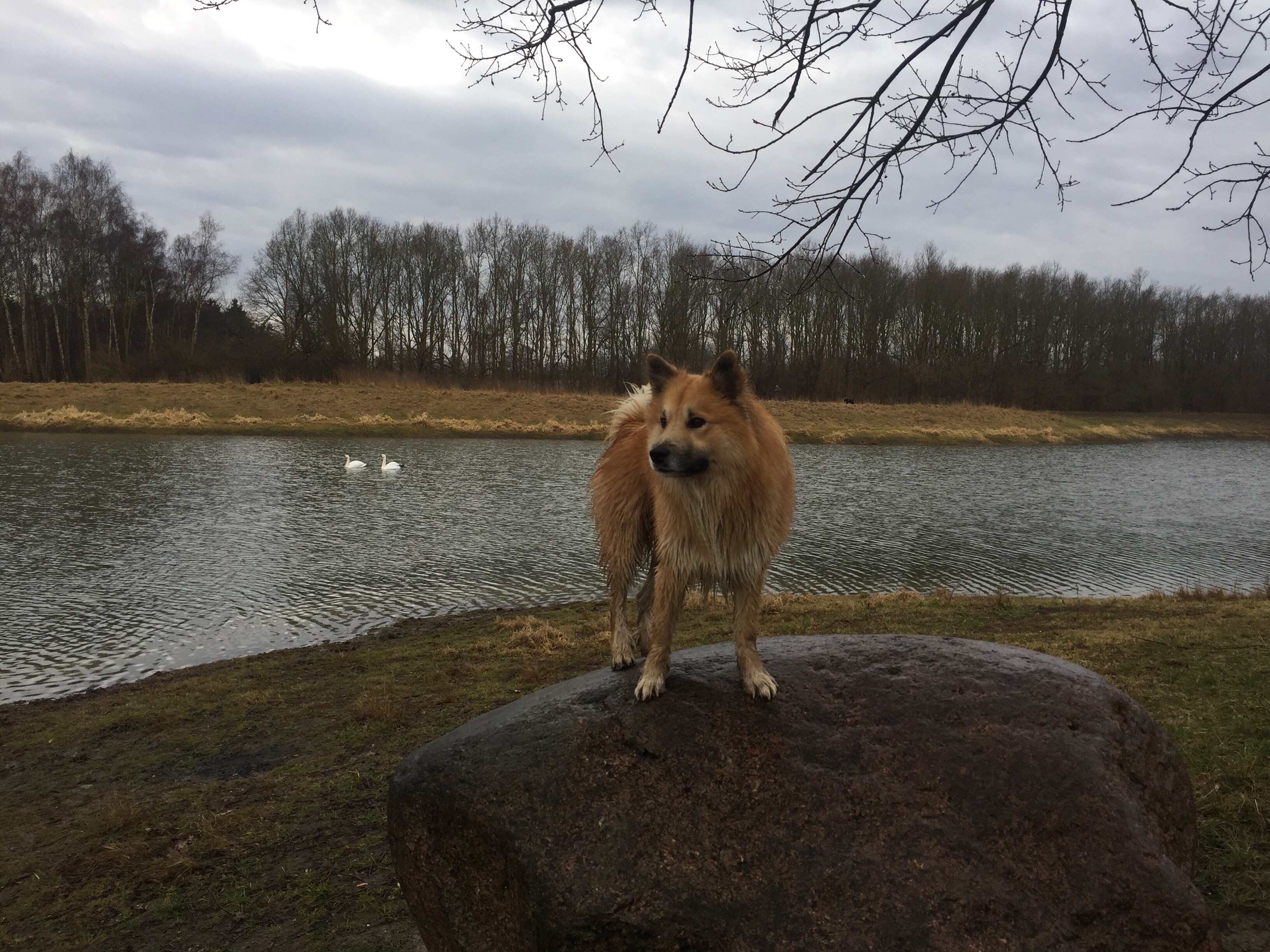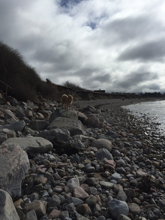 Vi ankom sent i aftes til Havnsø så energien var højt morges da jeg tog bilen til vejrhøj for at mødes med veninde til en seriøst mudret og smattet gåtur op og ned af bakke. To timer senere havde Balder både gravet efter mus og var blevet noget sort i pelsenog havde badet i havet flere gange.