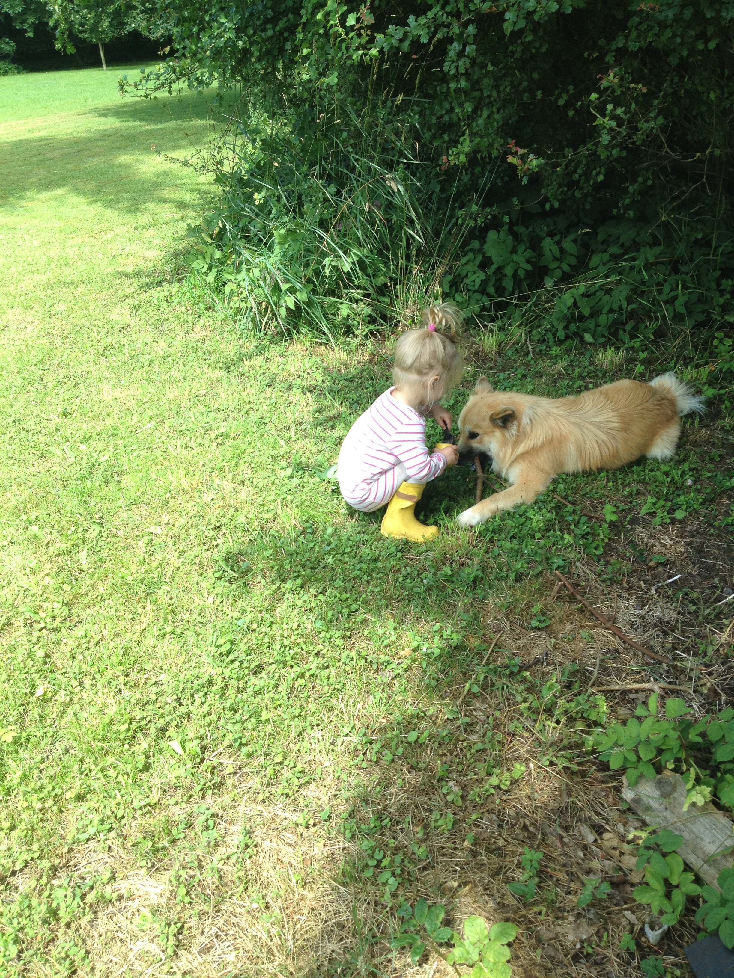Så har vi lige været ude at gå aftentur. Vejret i dag har været meget blandet, blæst og mange byger. Balder fandt som sædvanligt et godt muldvarpehul, som han helt forsvandt i både fysisk og psykisk. Ville ønske, at jeg havde taget en video af ham, hvor han havde snuden nede i et hul som en slags centrum, og bagkroppen dansede rundt, som om han tegnede en cirkel 🙂